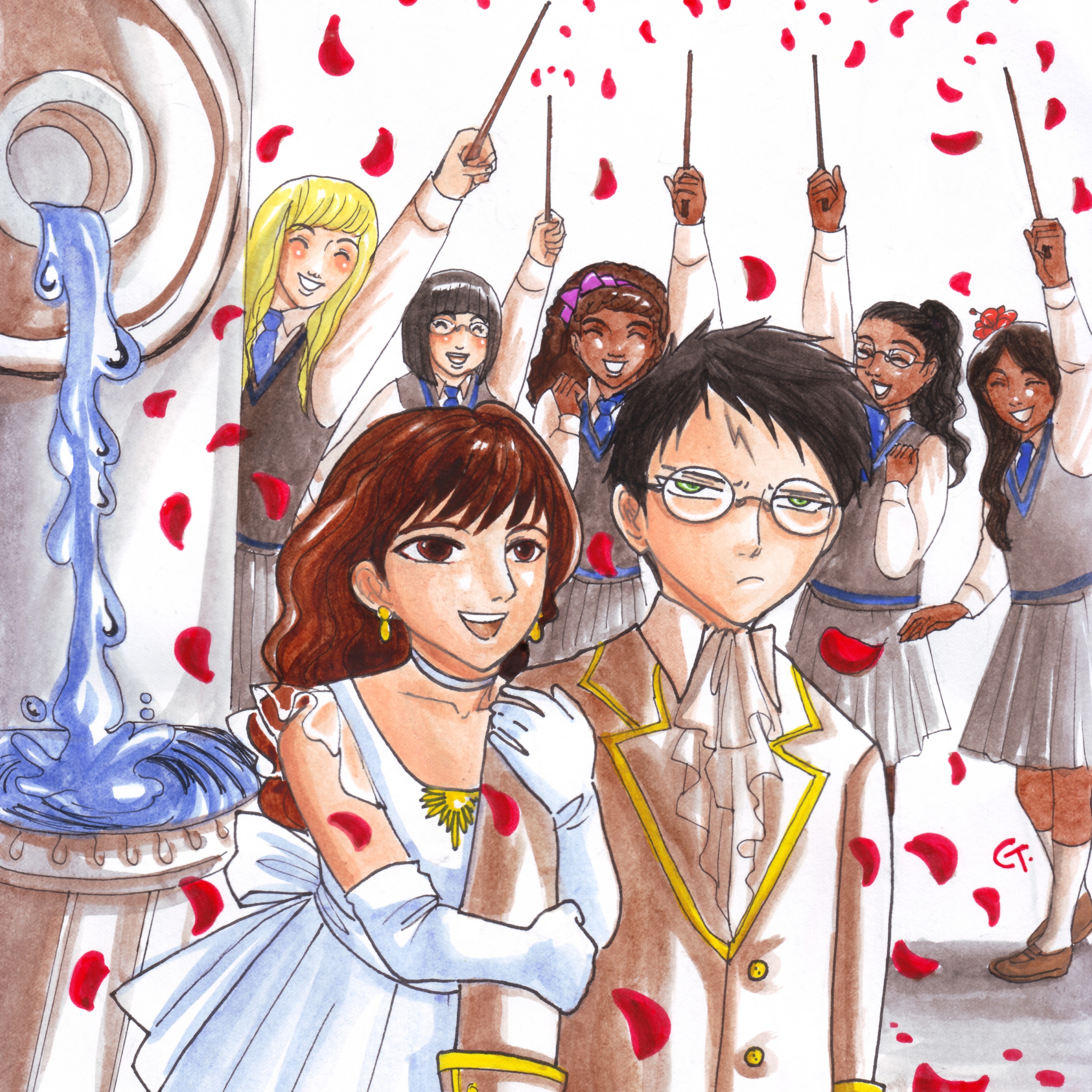 On the first week of school, Hermione is surprised that she enjoys beating Harry in most classes so much. She attributes it to them being in a romance and publicly pressures him into going on a date as forfeit for losing a book-reading contest between the two of them.